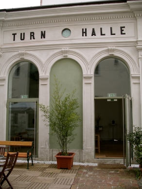 Im 1. Stock der ehemaligen Erbsenschälfabrik befindet sich der 200m2 große Veranstaltungssaal. Der Saal ist über eine Stiege am hinteren Ende der Turnhalle oder separat durch das Stiegenhaus der renovierten Fabrik begehbar. Dadurch, dass sich die Toilettenanlagen und die Bar in der Turnhalle im Erdgeschoss befinden wird der Saal meist in Verbindung mit der Turnhalle gebucht bzw. vermietet. Vom Veranstaltungssaal im 1. Stock erreicht man auch die 240m2 große Dachterrasse, welche sich in den Sommermonaten großer Beliebtheit erfreut.